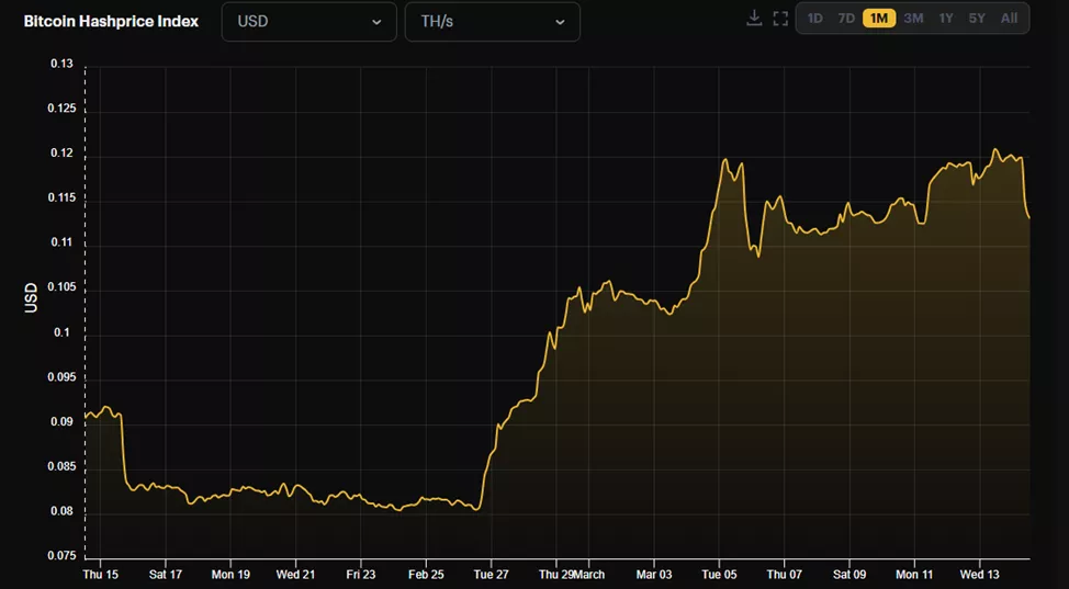 По данным Hashrate Index, хешпрайс составляет $0,11316 за TH.