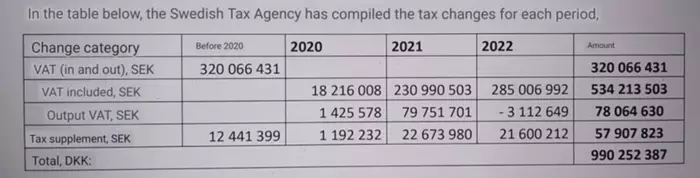 Компании, нарушившие налоговое законодательство, будут обязаны выплатить налоговой службе свыше 990 млн шведских крон ($90 млн). Эта сумма включает в себя неуплаченный НДС на сумму в 932 млн крон ($85,4 млн) и прочие сборы в размере 57,9 млн крон ($5,3 млн).