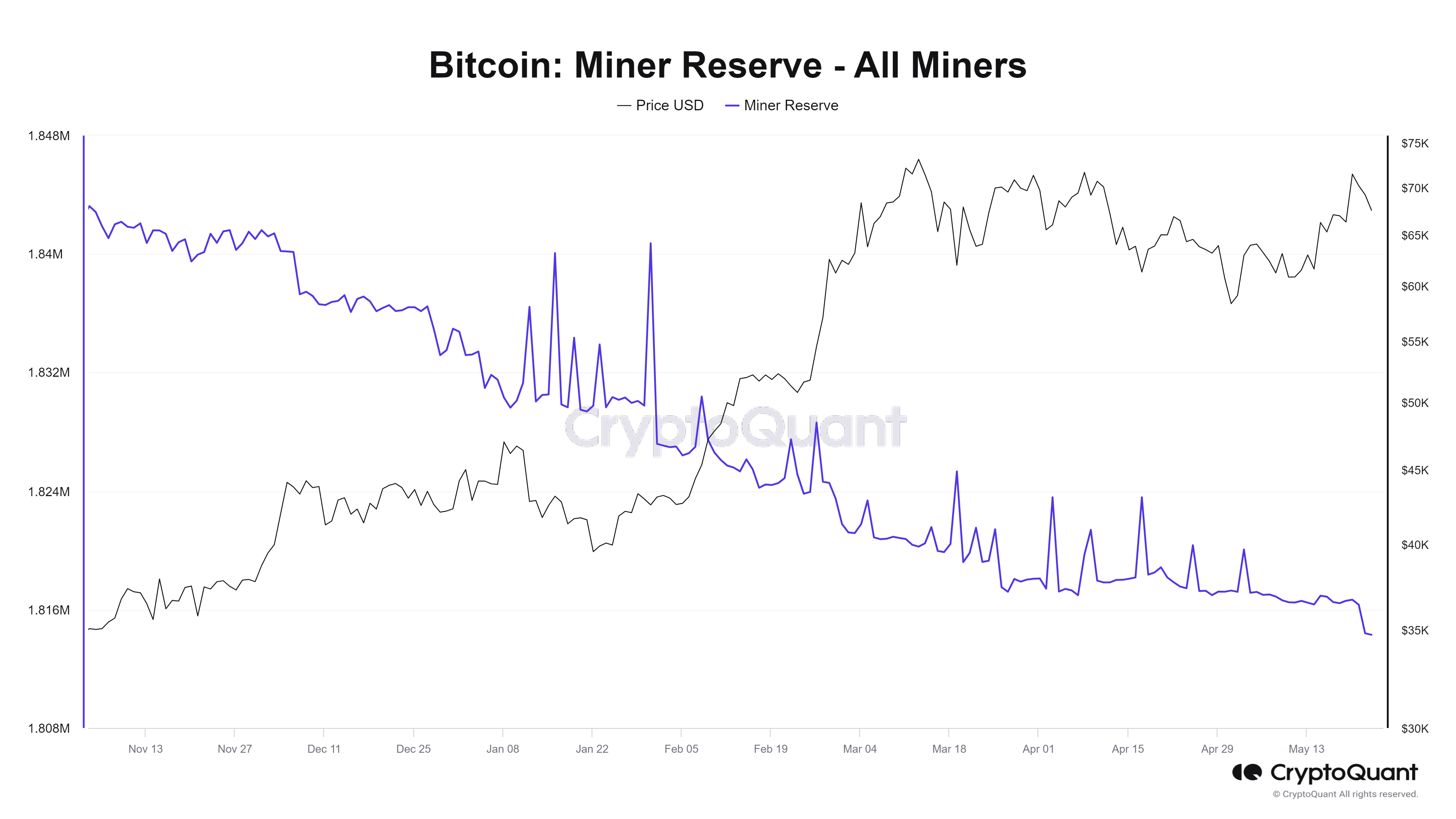 Из-за падения доходности майнинга в результате сокращения награды за блок компании, занимающиеся криптодобычей, приступили к продаже биткоинов. Их резервы снижаются с 3 мая, на это указывают данные платформы CrypQuant.