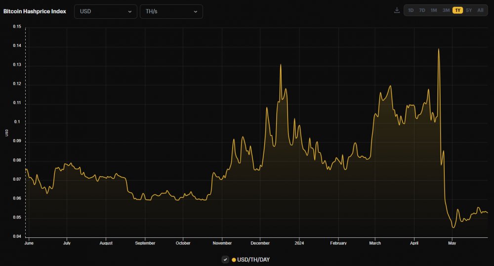Во время события халвинга, состоявшегося 20 апреля, Hashprice резко вырос до 0,140 доллара, но затем резко упал, когда вознаграждение за блок было сокращено вдвое.