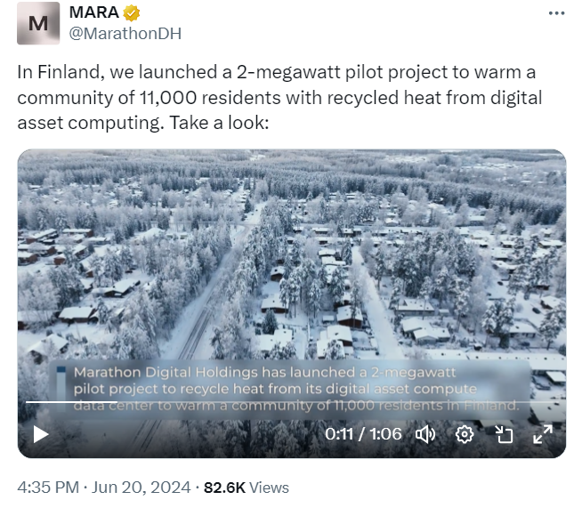 Майнинг биткоинов становится многообещающим возобновляемым источником отопления, и все больше компаний обращают на это внимание после того, как Marathon запустил пилотный проект по отоплению города с населением 11 000 человек в Финляндии.