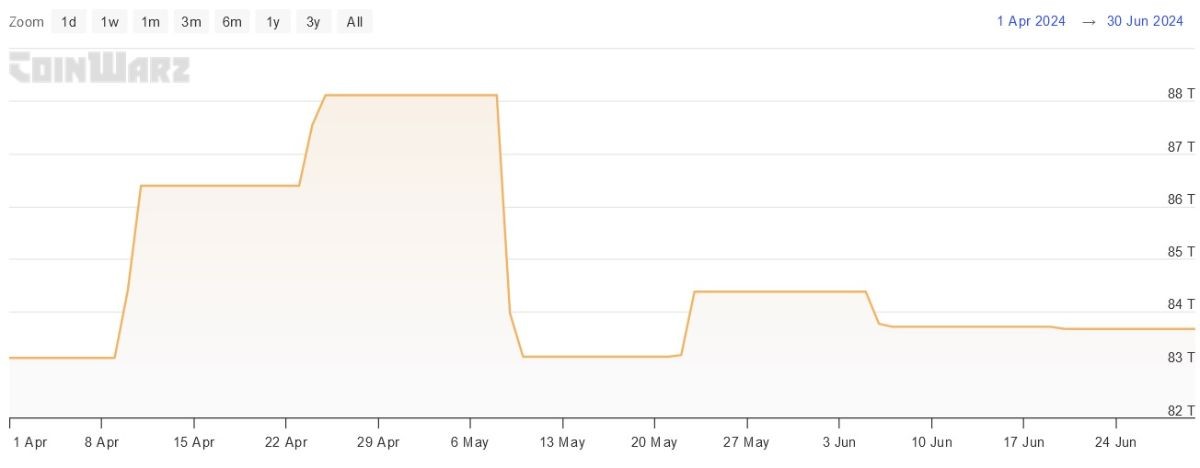 Изменение сложности майнинга биткоинов во втором квартале 2024 года
