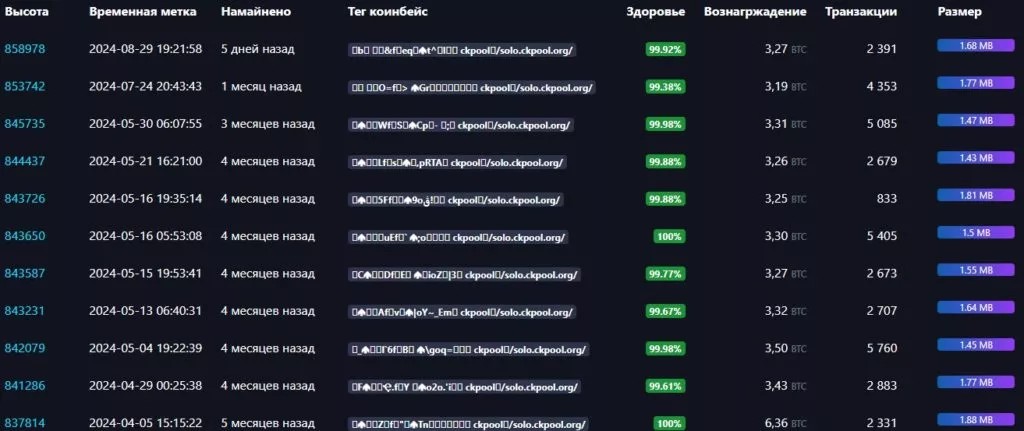 С 2014 года майнеры-одиночки первой криптовалюты добыли по меньшей мере 329 блоков, подсчитали журналисты Protos на основе данных CK Pool.