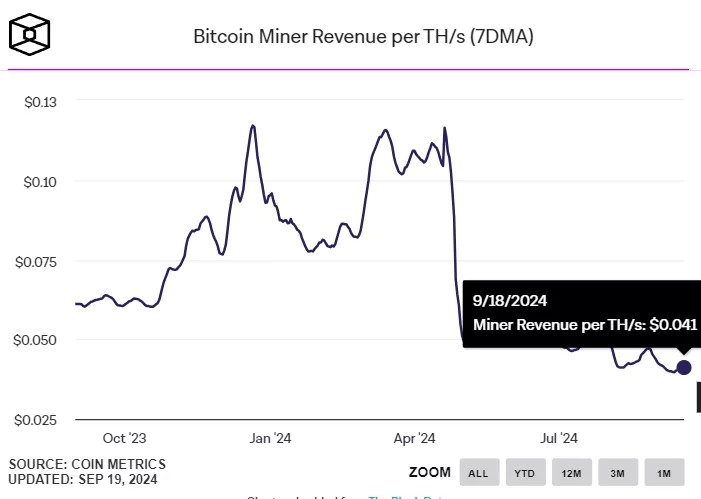 После уполовинивания награды за блок в результате апрельского халвинга рентабельность добычи первой криптовалюты значительно снизилась, о чем свидетельствует график ниже.