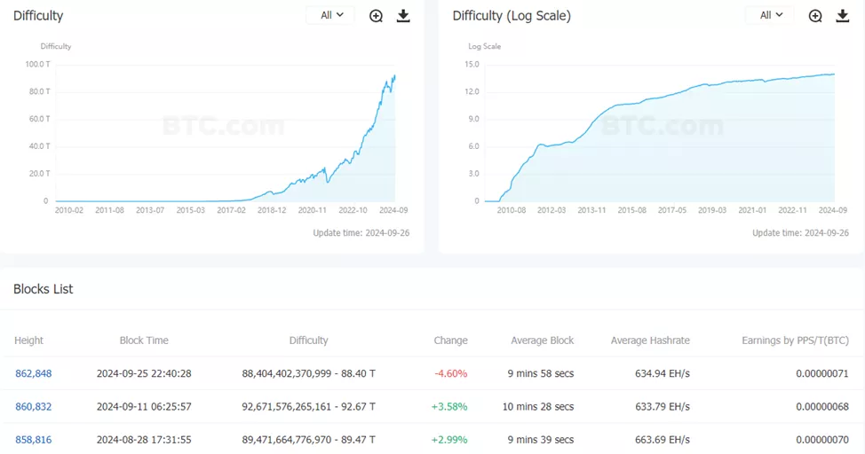 Средний хешрейт за период с предыдущего изменения значения составил 740,3 EH/s, интервал между блоками — восемь минут и 24 секунды.