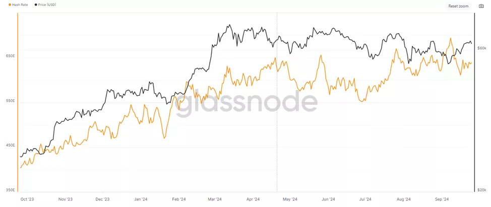 Согласно Glassnode, сглаженный 7-дневной скользящей средней показатель вычислительной мощности достиг 638,4 EH/s.