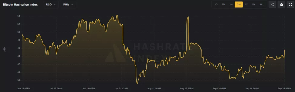 После обновления сложности хешпрайс подскочил до $46 на PH в сутки.