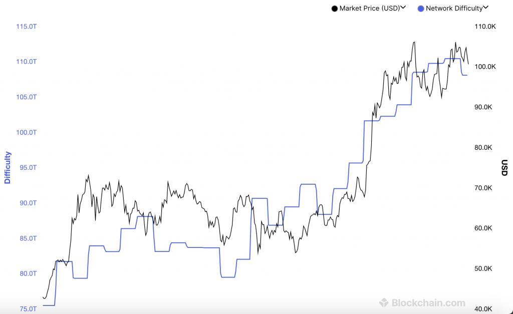Сложность майнинга биткоина корректируется каждые две недели в зависимости от активности майнеров, чтобы поддерживать интервал между блоками около десяти минут. 27 января 2025 года произошло снижение сложности — второй подобный случай за последние полгода. Предыдущее снижение было зафиксировано 25 сентября 2024 года после достижения исторического максимума.