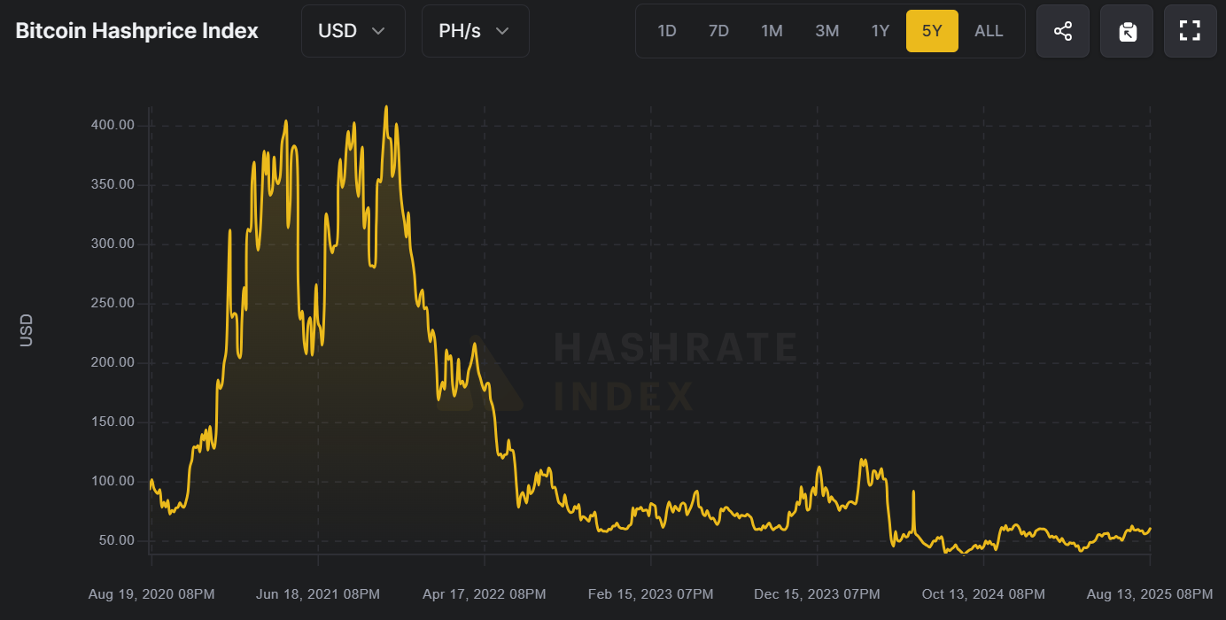 Индекс хешрейта биткоина — показатель прибыльности майнеров BTC — со временем снизился. Источник: Hashrate Index