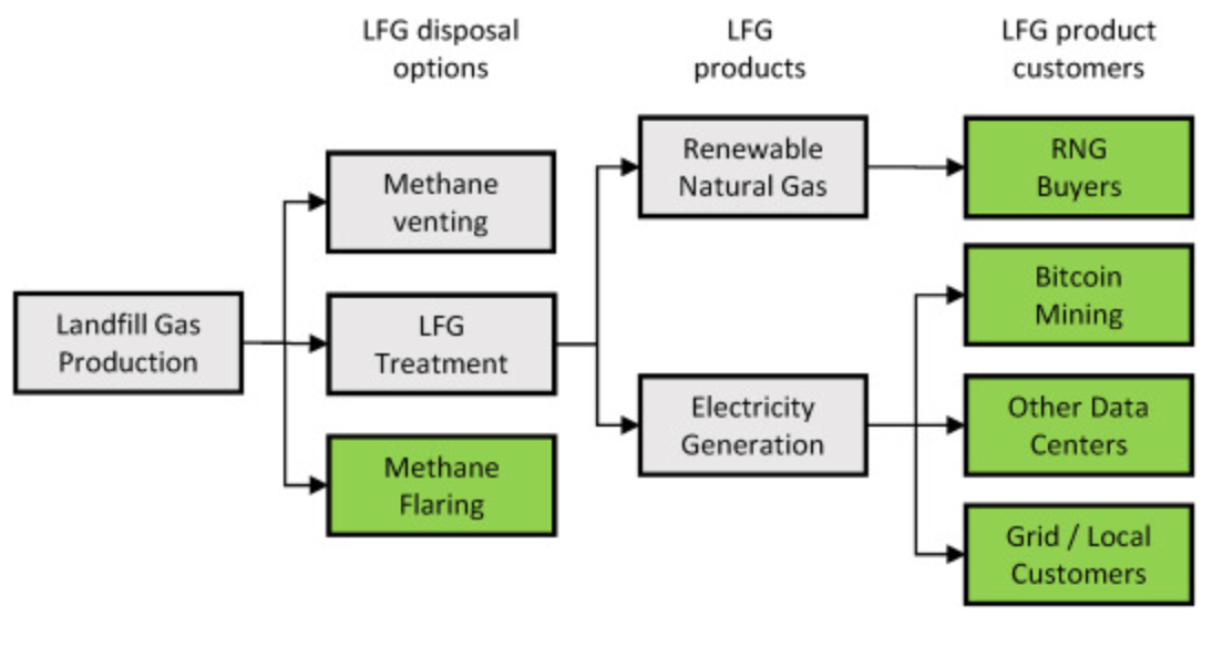 Иллюстрация, показывающая поток отводимого метанового газа в полезную энергию. Источник: ScienceDirect