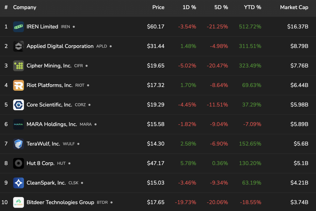 CleanSpark является вторым по величине в мире майнинговой компанией биткоина после Marathon Holdings с операционным хешрейтом 46,60 эксахешей в секунду (EH/s), согласно данным BitcoinMiningStock.