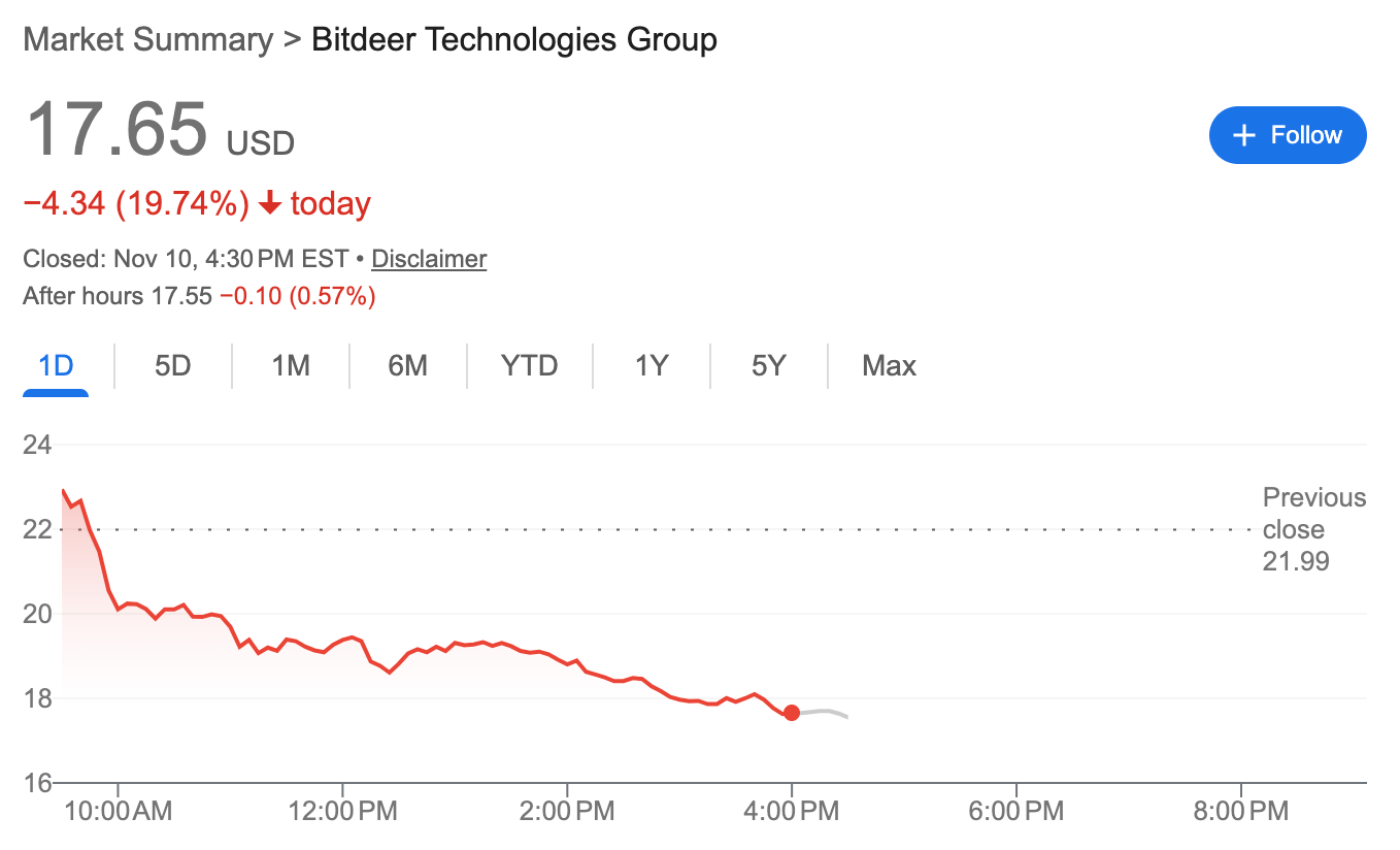 Акции сингапурского майнера биткоинов Bitdeer Technologies упали почти на 20% в понедельник после того, как компания сообщила о резком росте квартальных убытков.