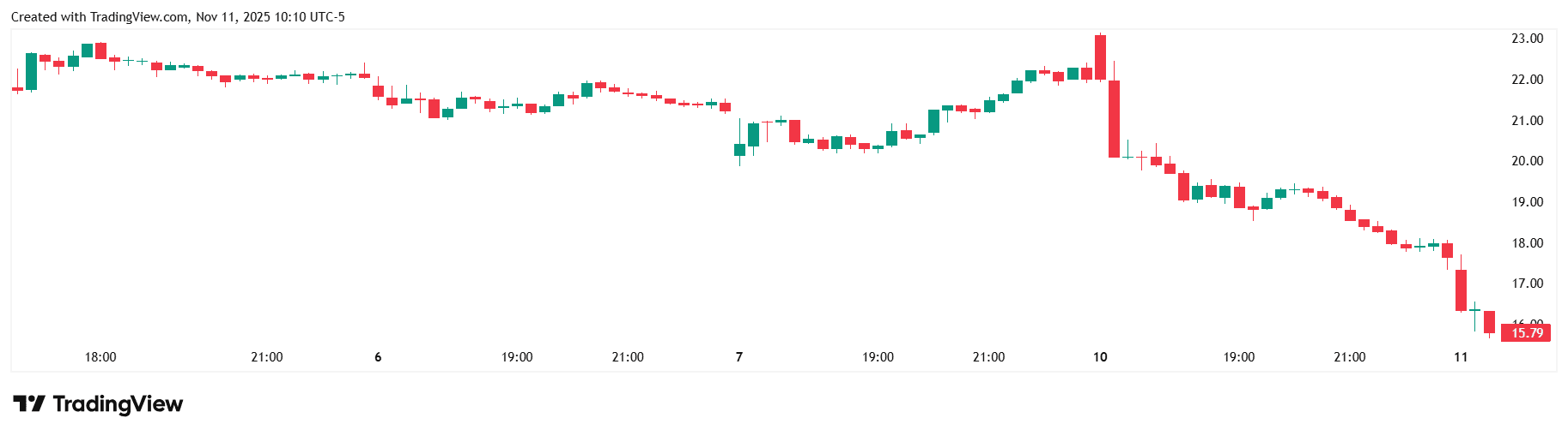 Неубедительные финансовые результаты отразились на котировках акций Bitdeer. 10 ноября 2025 года эта позиция закрылась с просадкой в почти 20%.