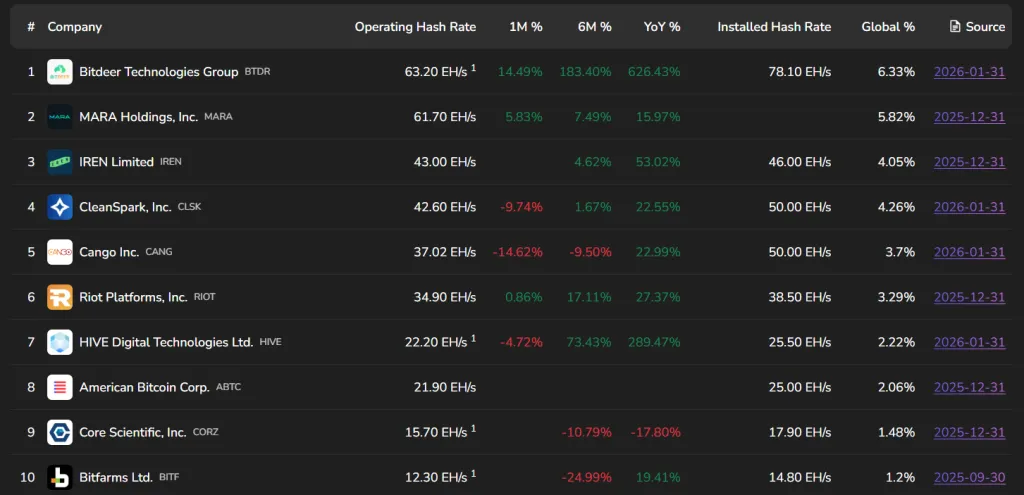 На момент написания American Bitcoin входит в десятку крупнейших отраслевых игроков, занимая восьмую строчку в глобальном рейтинге публичных майнинговых компаний.