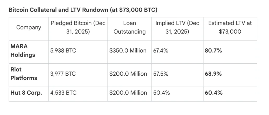По состоянию на 31 декабря три крупнейших майнера — Hut 8, MARA Holdings и Riot — предоставили суммарно более 14 500 $BTC в качестве залога по кредитам, заявили авторы журнала.