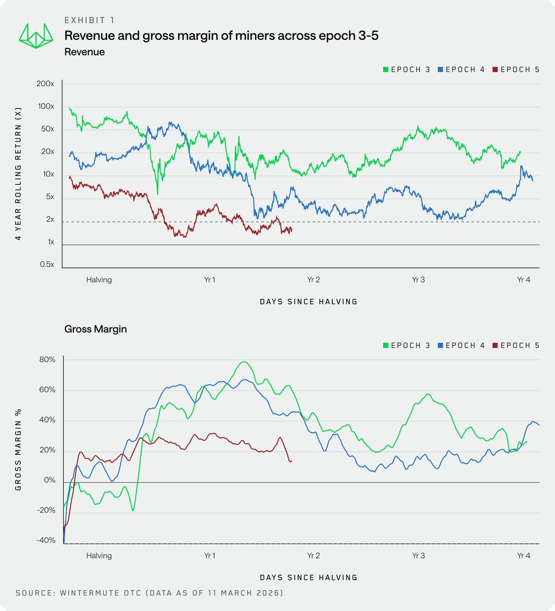 Согласно экспертам, впервые за четырехлетний рыночный цикл биткоин ($BTC) не смог обеспечить двукратный рост цены, необходимый для компенсации сокращения выручки в результате халвинга. На пике валовая маржа достигла значений, которые ранее отмечались на дне медвежьего рынка.