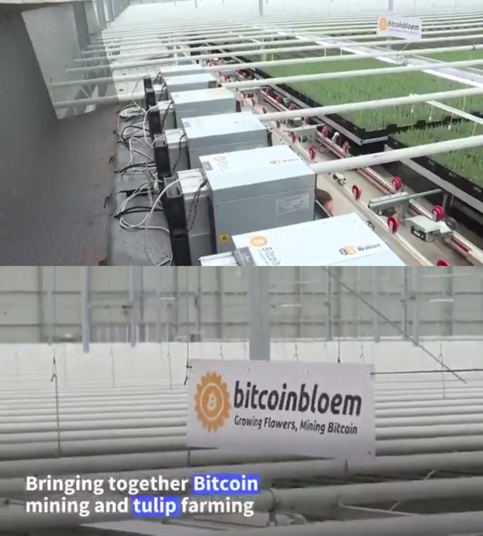 Проект Bitcoin Bloem в Нидерландах использует тепло от майнинга для выращивания тюльпанов. Ферма работает с 2022 года недалеко от Роттердама. Часть энергии для инфраструктуры майнинга обеспечивают солнечные панели на крыше здания. Таким образом фермеры заботятся об окружающей среде и оптимизируют собственные расходы.