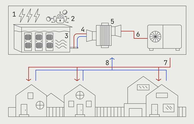 Компания Marathon Digital Holdings (MARA) в 2024 году запустила проект по отоплению зданий для 80 000 жителей Финляндии. В процессе используется тепло, вырабатываемое при добыче биткоинов. Вода проходит через оборудование, которое хранится в специальных металлических блоках для охлаждения, нагревается до 50–78°C и поступает в городские системы теплоснабжения.
