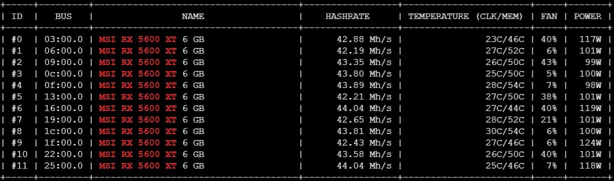 Хешрейт AMD RX 5600