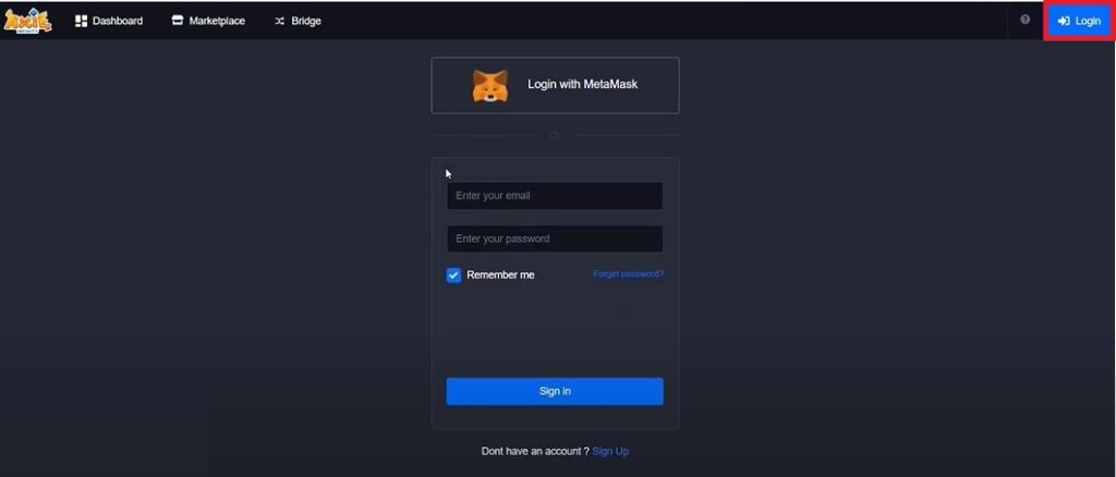 Следующий шаг – нужно перейти в маркетплейс и авторизоваться в нем через Metamask.