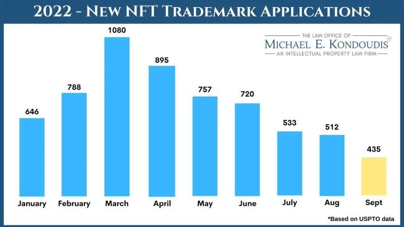 В 2022 году количество заявок на товарные знаки в США, относящихся к NFT и другим продуктам блокчейна, уже почти утроилось относительно 2021 года.