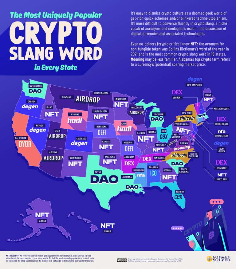 Недавнее исследование, проведённое сервисом Crossword Solver, показало, что слово «NFT» (невзаимозаменяемый токен) является самым популярным выражением из криптосленга, используемого в США.