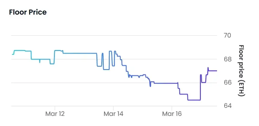 А вот стоимость самых доступных токенов из топовых коллекций вроде Bored Ape Yacht Club (BAYC) или CryptoPunks не снизилась так сильно. Вот соответствующие данные.