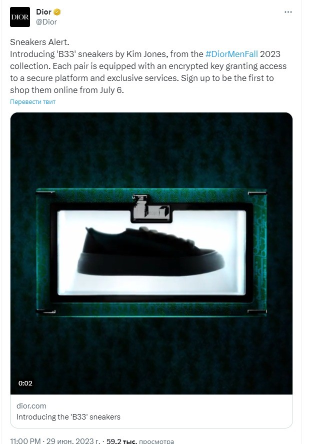 Кроссовки под названием B33 стали частью коллекции Dior Men’s Fall 2023 и были разработаны креативным директором Dior Menswear Кимом Джонсом, говорится в сообщении компании.