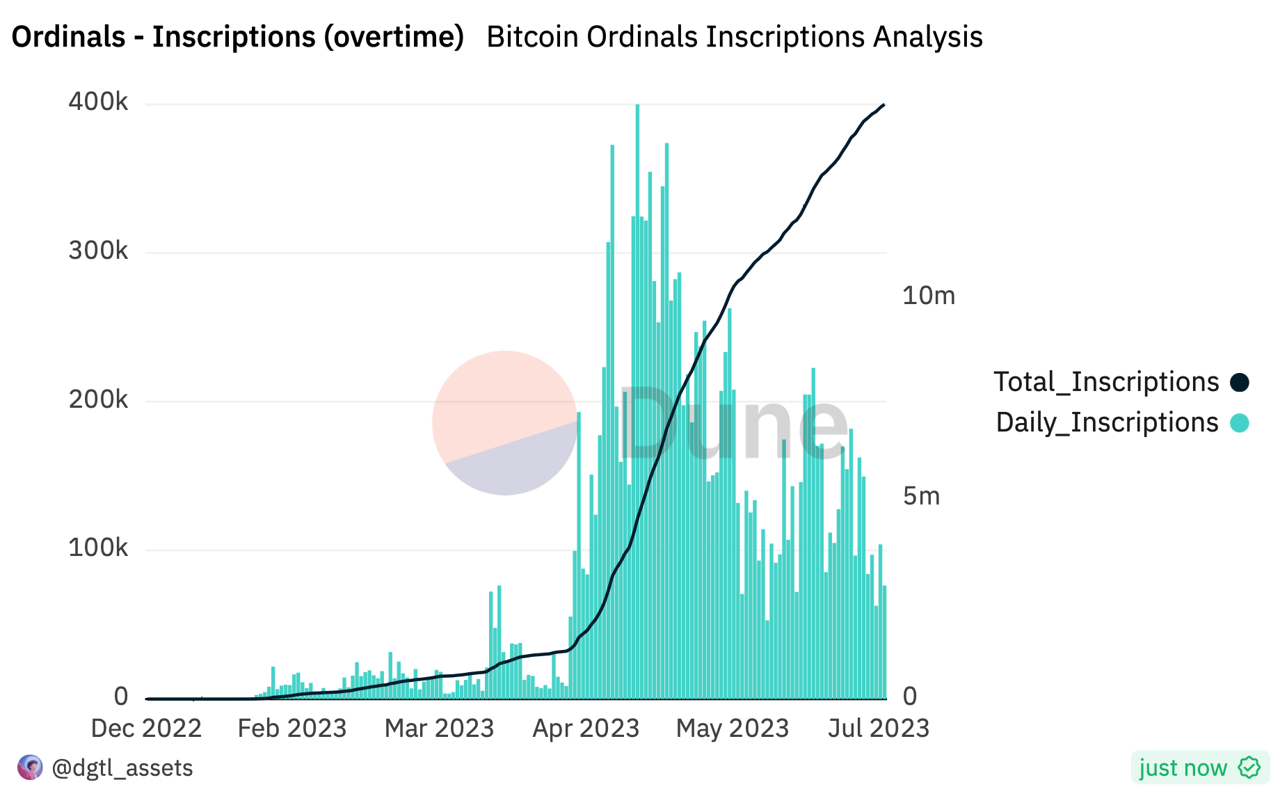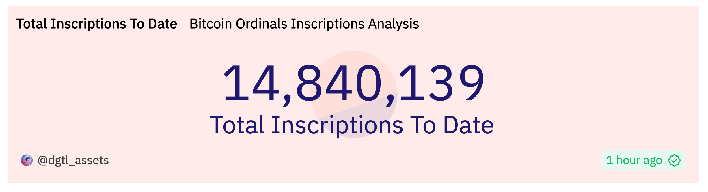Общее количество NFT в сети Биткоина на основе протокола Ordinals