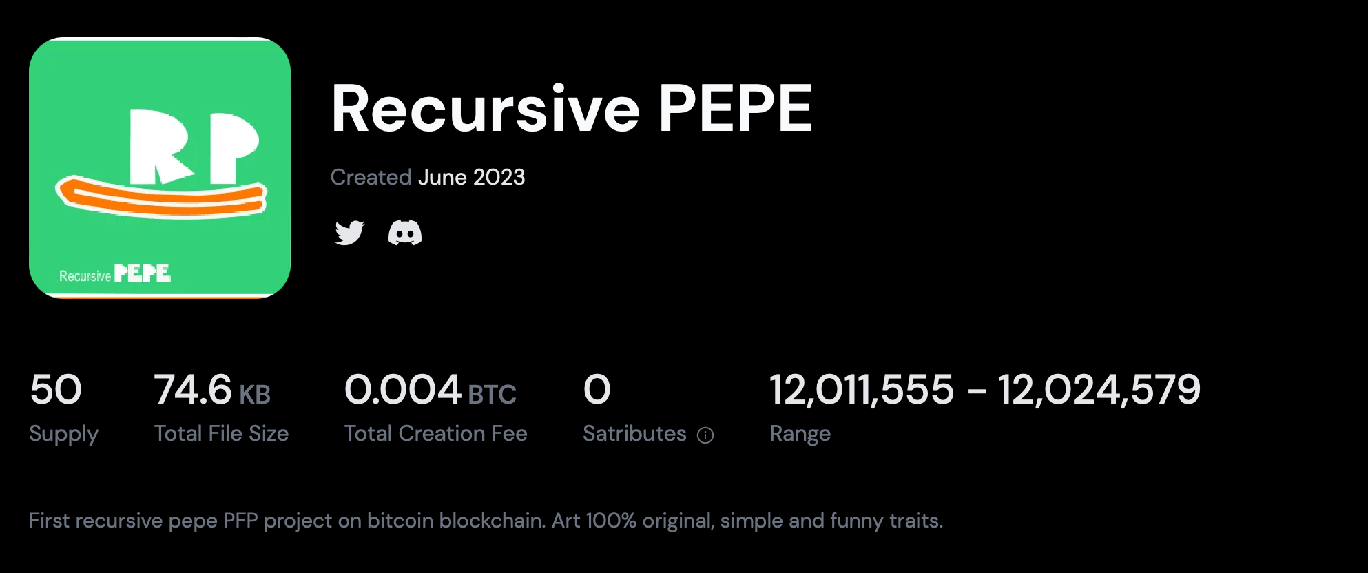 Данный о рекурсивной NFT-коллекции PEPE в Ordinals