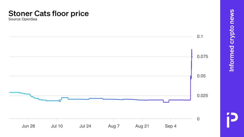 Однако действия SEC привели к обратному эффекту, так как минимальная цена NFT Stoner Cat взлетела более чем на 250%. При этом объёмы продаж увеличились на 2500%.
