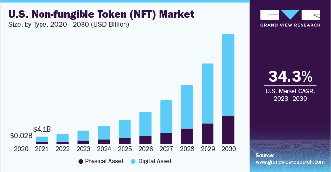 Согласно прогнозам, в период с 2023 по 2030 год среднегодовые темпы роста рынка составят 34,2%. Этот показатель как нельзя лучше подчеркивает, с какой феноменальной скоростью рынок цифровых активов набирает вес и популярность.