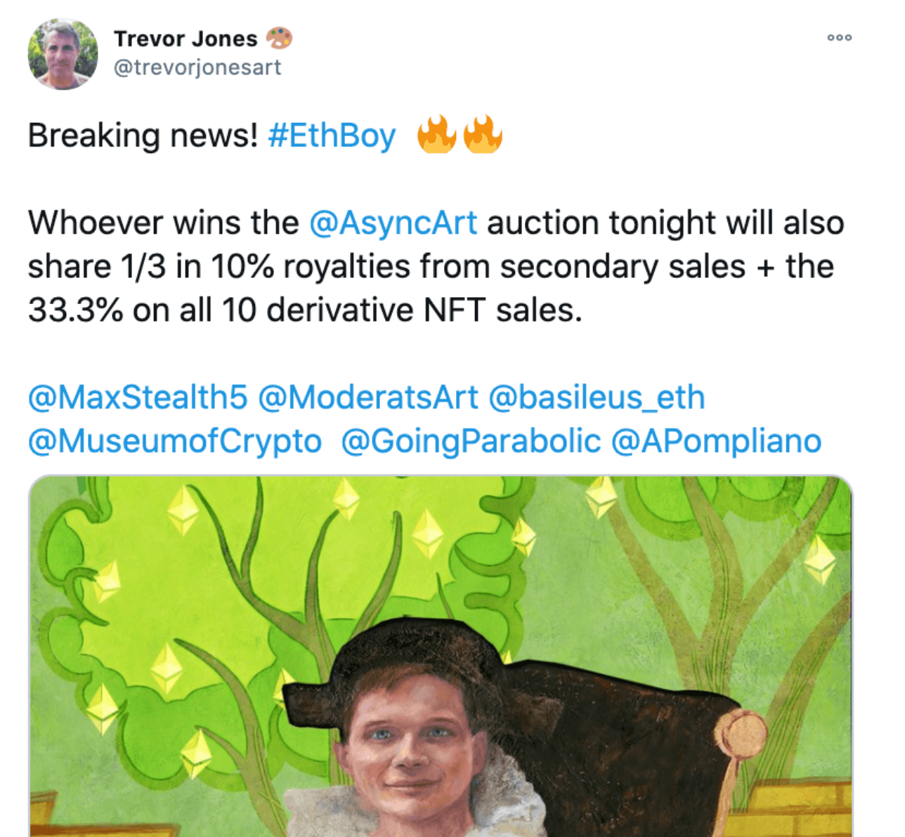 Хотя EthBoy был продан именно на OpenSea, новый владелец NFT решил по собственному желанию заплатить роялти за токен, хотя и не был обязан этого делать. 10 процентов от суммы сделки в размере 20 ETH были автоматически выплачены платформе Async Art, представители которой как раз координировали создание токена.