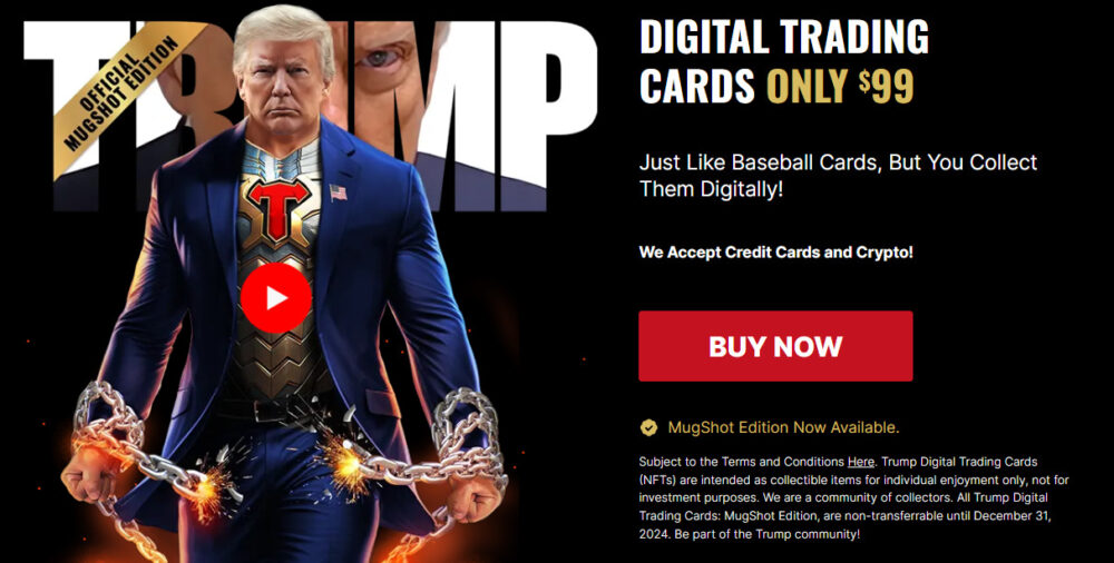 Трамп в прошлом году дебютировал с NFT проектом под названием Trump Digital Collectible Cards, на котором изображены его личности, похожие на бейсбольные карточки. В апреле этого года он выпустил вторую серию коллекционных предметов. Обе коллекции были быстро распроданы.