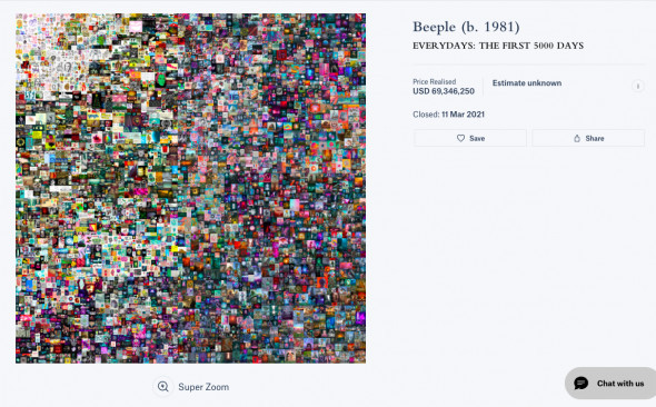 В марте прошлого года аукционный дом Christie’s продал электронную картину «Каждый день: первые 5 тыс. дней» (Everydays: The First 5000 Days) художника Beeple и привязанный к ней NFT-токен за $69,3 млн. Этот невзаимозаменяемый токен считается самым дорогим в истории.