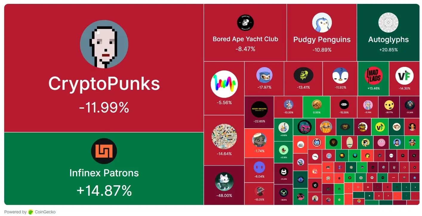 Голубые фишки падают, но Infinex Patrons и Autoglyphs противостоят тренду