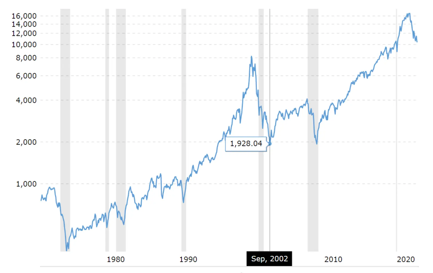 Вернёмся к началу текущего года. Неопределённость никуда не делась, а построить прогноз на будущее в том числе можно из оглядки на пузырь доткомов, который образовался на фондовом рынке США в конце 90-х годов. К началу 2000-х годов раздутый индекс Nasdaq Composite, в котором представлены технологические компании, резко пошёл вниз, когда ФРС начала повышать процентные ставки в 1999 и 2000 годах. Nasdaq упал с пика на 77 процентов, то есть аналитики решили связать это событие с происходящим сегодня и дать понять, что любой позитив на рынке якобы может исчезнуть.