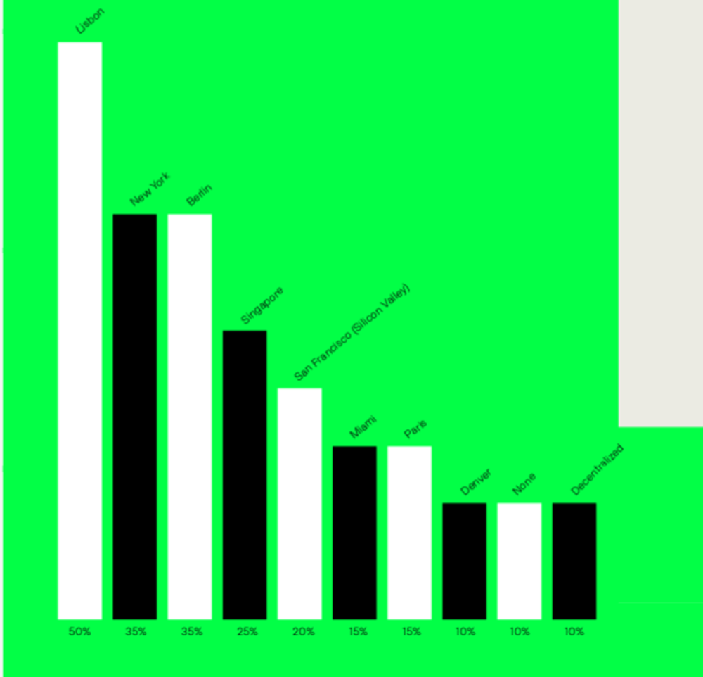 У Нью-Йорка второе место за счет того, что есть доступ к венчурному финансированию, по крайней мере пока. А Париж может похвастаться только тем, что в нем можно без проблем разрабатывать проекты Web3.