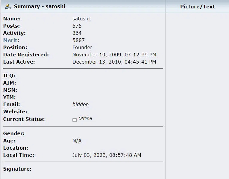 2 июля в Твиттере появились сообщения о том, что Сатоши Накамото вышел на связь. Подовом стала активность в учетной записи разработчика на форуме bitcointalk. Участники криптосообщества обнаружили, что в его профиле изменилась дата последнего посещения — якобы он выходил в онлайн 1 июля 2023 года.