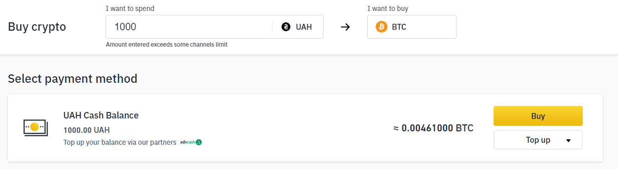 Ввод валют возможен благодаря сотрудничеству между Binance и платёжной платформой Advcash. Примечательно, что при использовании кошелька Advcash комиссии за ввод рублей (не гривен) на биржу нет. Правда, при попытке пополнения самого кошелька Advcash рублями с вас снимут от 3 до 4 процентов комиссии. То есть за ввод рублей или гривен всё равно придётся кому-то платить.