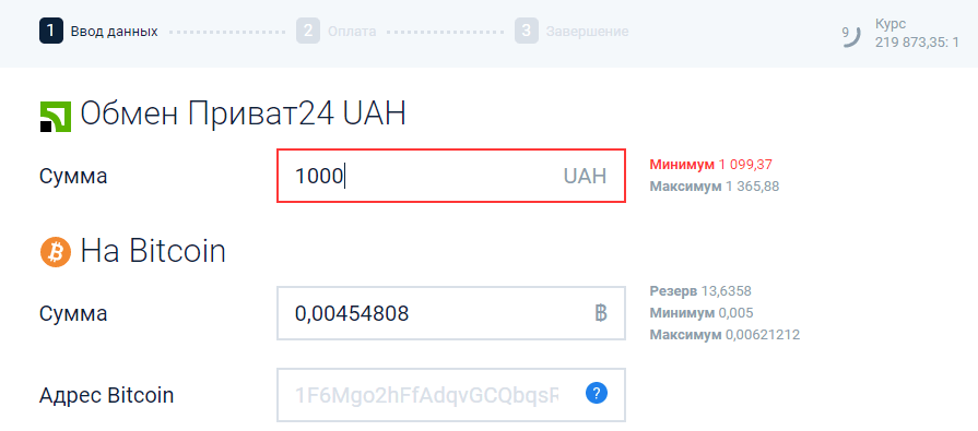 А теперь сравним разные платформы. Вот одно из топовых предложений для покупки биткоинов за фиат на Bestchange. Здесь за тысячу гривен нам предлагают 0.00454808 BTC, а на Binance мы получили 0.00460742 BTC