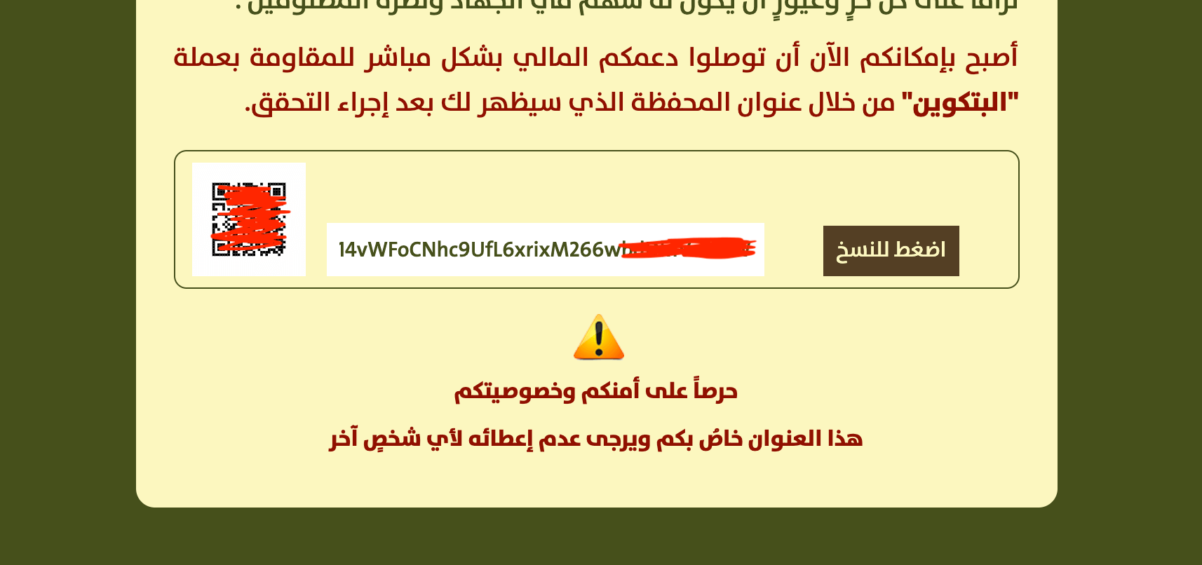 Реклама поддержки террористов в Биткоине