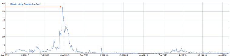 Однако исторические данные показывают, что всякий раз, когда Биткоин растёт в популярности, его комиссии также повышаются. Чуть больше полугода назад, когда BTC внезапно подорожал до 14 тысяч долларов из-за растущей пирамиды PlusToken, сборы сети выросли до 6.50 доллара. Во время резкого роста в декабре 2017 года многие комиссии за транзакции итого превышали 55 долларов.