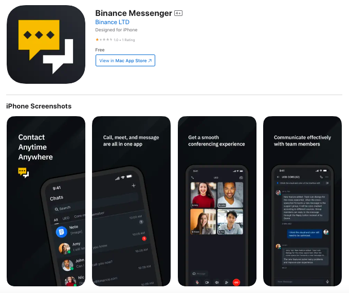 В магазине App Store появилось приложение под названием Binance Messenger, которое криптокомпания разместила без анонса.