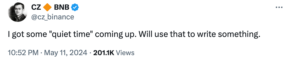 Бывший генеральный директор криптовалютной биржи Binance Чанпэн «CZ» Чжао заявил, что планирует «написать что-нибудь» во время своего предстоящего четырехмесячного заключения.