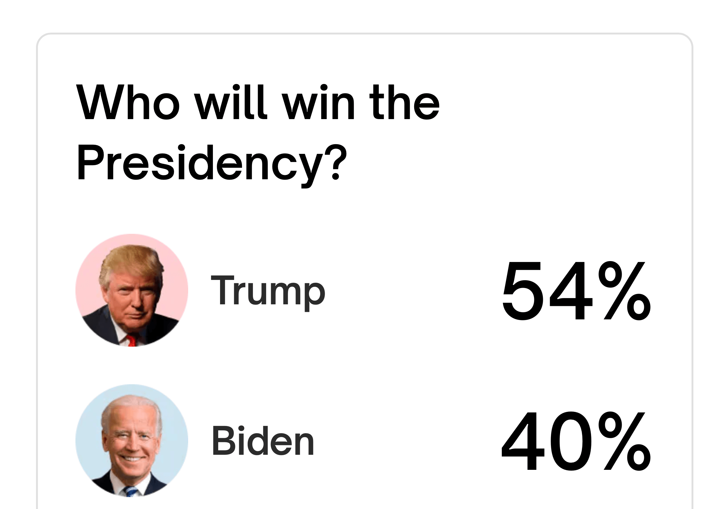 Забавно, но любители ставок не считают, что происходящее помешает Трампу оказаться на посту президента США по итогам очередных выборов. После соответствующего вердикта присяжных вероятность выбора Дональда на указанную должность на платформе Polymarket выросла до рекордных 55 процентов, тогда как соответствующий показатель Байдена составлял 38 процентов. В итоге показатели слегка стабилизировались до 54 и 40 процентов.