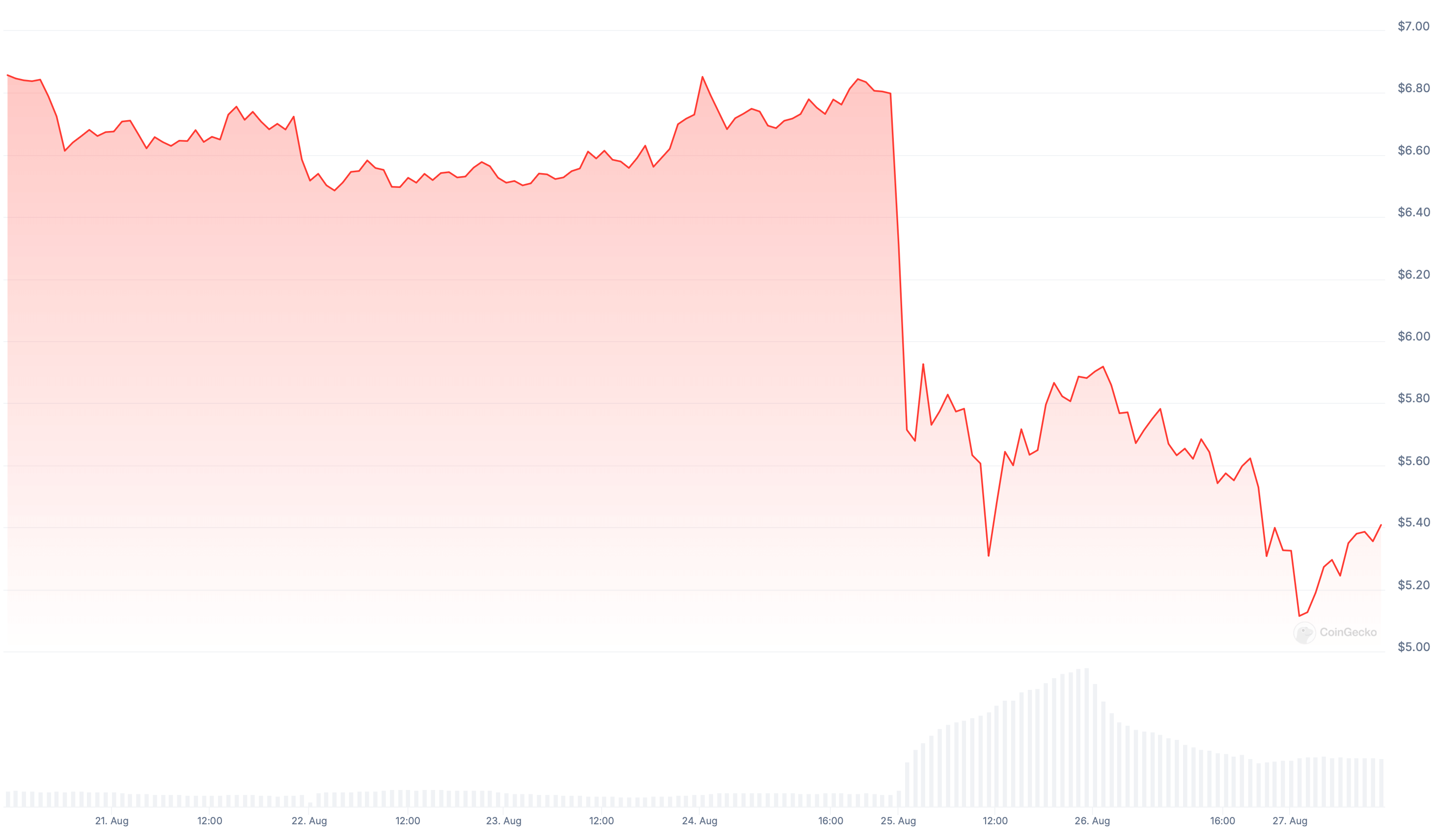 Изменение стоимости криптовалюты Toncoin TON за последнюю неделю