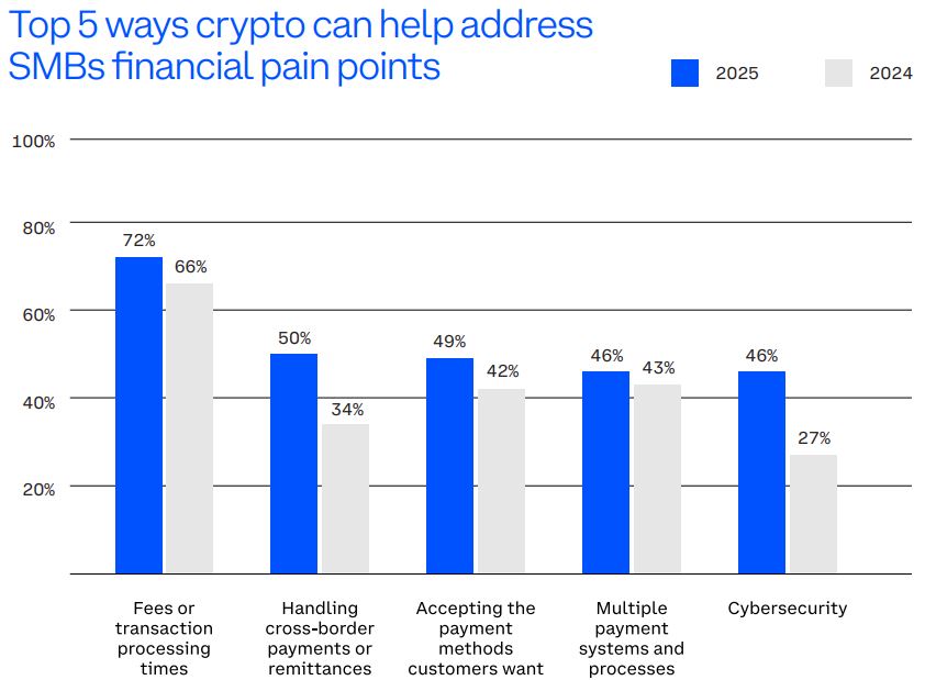 Большинство малых и средних предприятий считают, что криптовалюта может помочь решить одну финансовую проблему. Источник: Coinbase