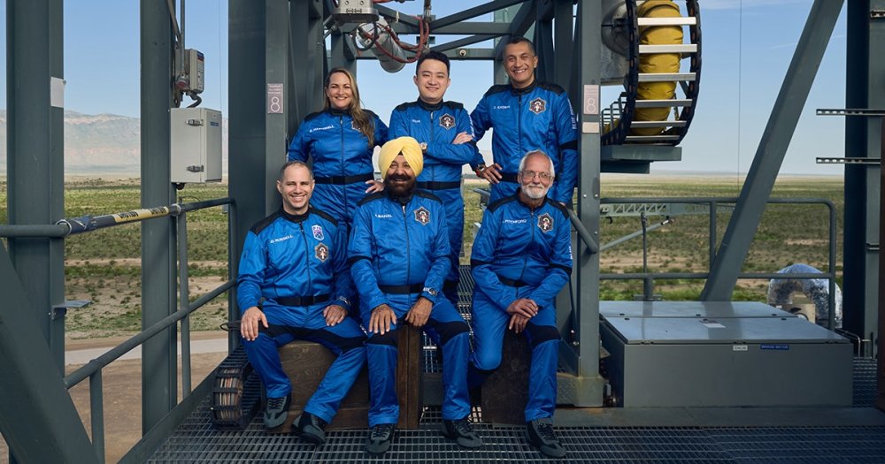 Экипаж миссии Blue Origin NS-34 с основателем Tron Джастином Саном в центре. Источник: Blue Origin