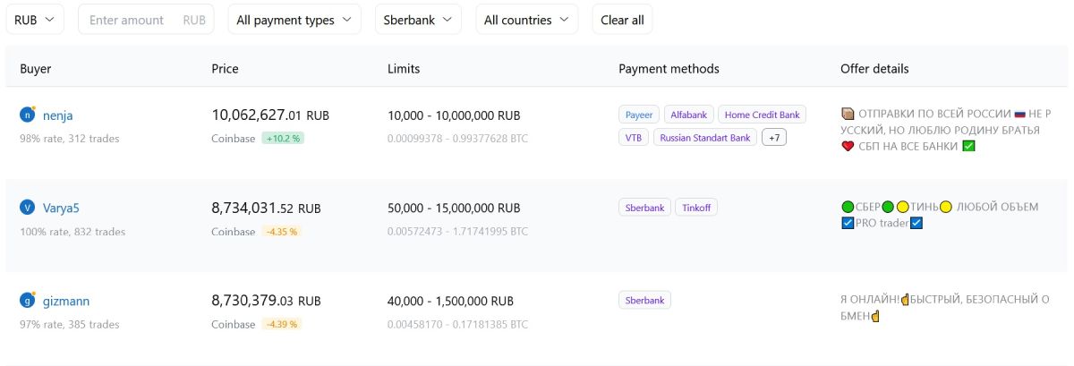 После введения экономических санкций против РФ в 2022-м биржи удалили торговые пары с рублём, в связи с этим у россиян исчезла возможность покупать и продавать цифровые активы за фиатную валюту. Но P2P-торговля пришла на выручку и стала хорошей альтернативой традиционной книге ордеров на биржах.